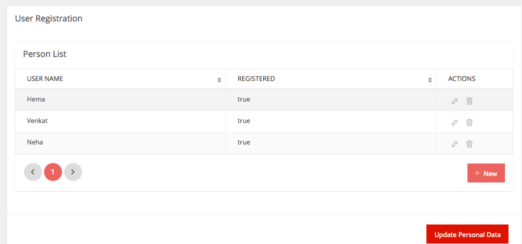 • UI Design for the Page: use Data Table to display/add/edit person details