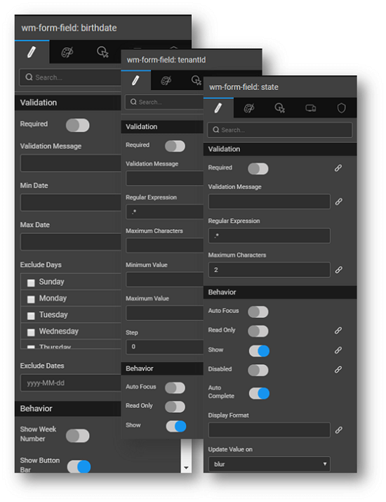 - behavior like Auto Focus, Read Only, Show etc can be set;