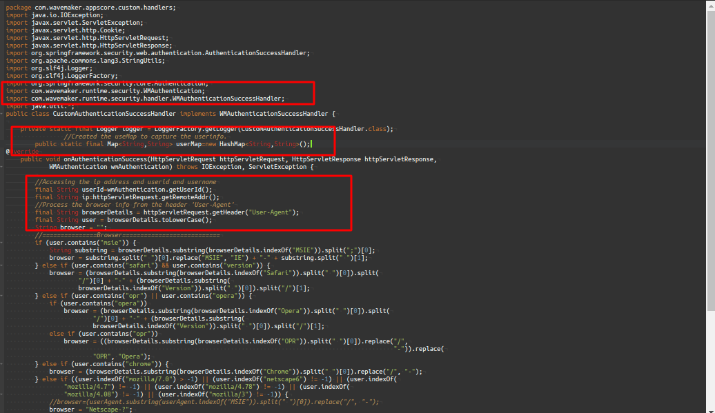 inside the handlers folder. For example, UserManagementApp/src/main/java/com/wavemaker/appscore/custom/handlers/CustomAuthenticationSuccessHandler.java
