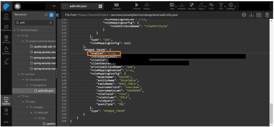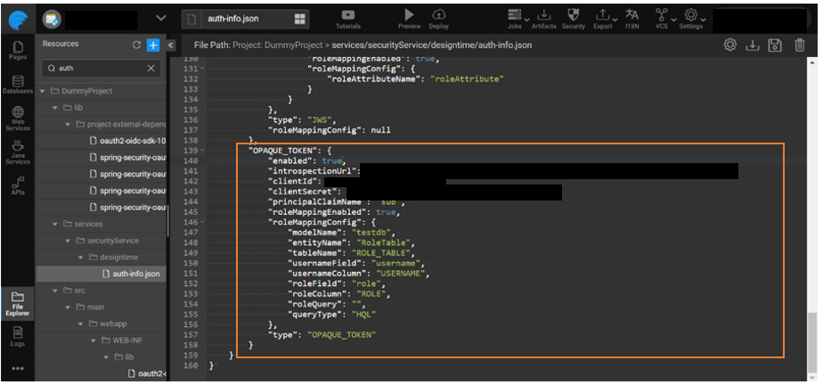 - Add the below JSON content to auth-info.json to enable the Opaque token provider.