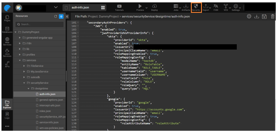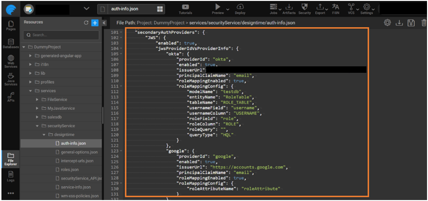 WaveMaker offers many security providers to enable authentication to the WaveMaker applications from the security dialog. The security providers like DEMO, Database, LDAP, Active Directory, SAML, OpenID, and Custom Security are the primary security providers. Additionally along with the primary provider a secondary provider can also be enabled like JWS or Opaque Token provider.