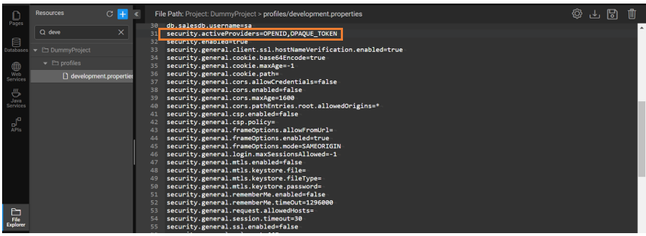 - Update the property security.activeProviders by adding OPAQUE_TOKEN to it. Example: DEMO, OPAQUE_TOKEN.