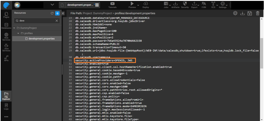 - Update the property security.activeProviders by adding JWS to it. Example: DEMO, JWS.