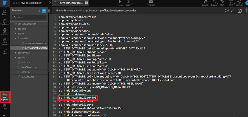 1. Open File explorer --> <project_name> --> profiles --> development.properties file. 2. Set db.datbaseName.maxPageSize to the required number.