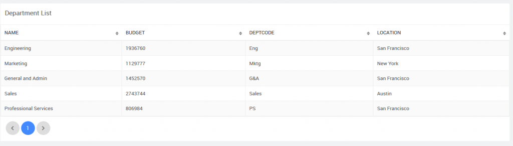 3. Click event of the Department Data Table will trigger a call to the Employee page passing the deptid, which will be used to filter the employee details in the Employee page.